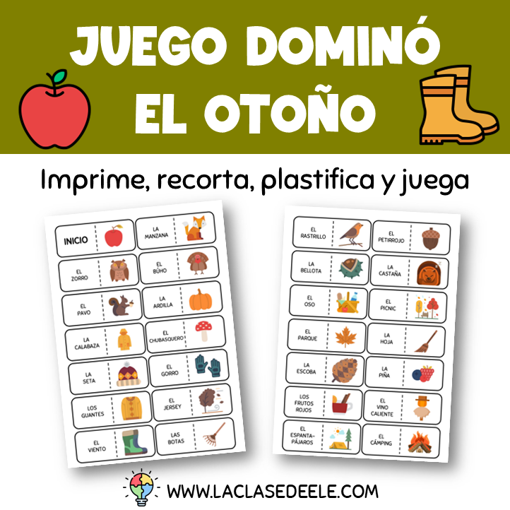 JUEGO DOMINÓ CON VOCABULARIO DEL OTOÑO EN ESPAÑOL
